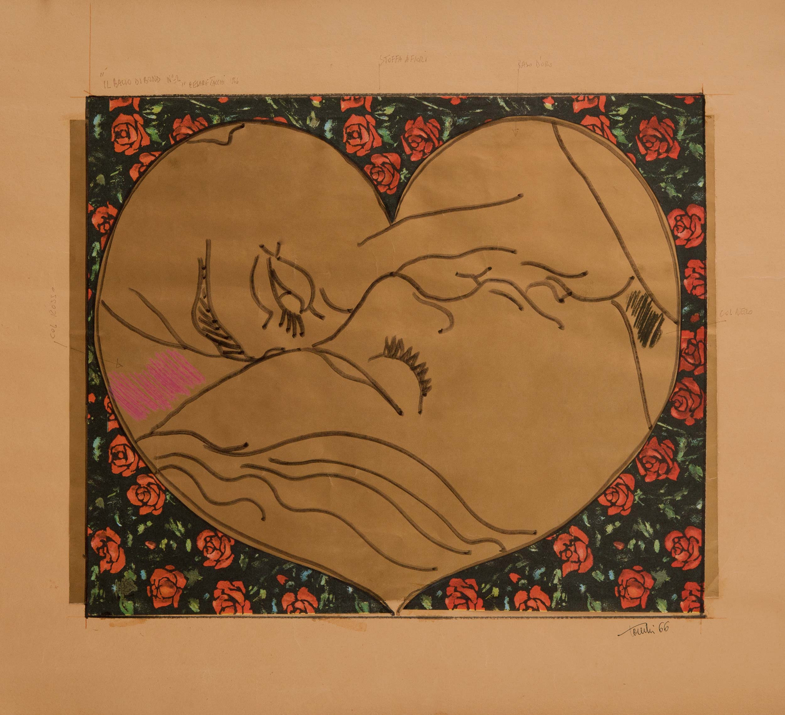 In his paintings he reproduces symbols, objects and characters of the contemporary urban landscape, advertising signs, cars, trams, taxis, elevators, bourgeois living rooms: not to contest the system, but almost to decode reality in the unreality of the work, releasing a strong metaphysical tension. In 1964 he began to use, as a support for the images, tapestries, brocades and furnishing fabrics, padded and quilted, on which he modeled a painting that ironically recovers the “floral” elegance of Botticelli and Pisanello.